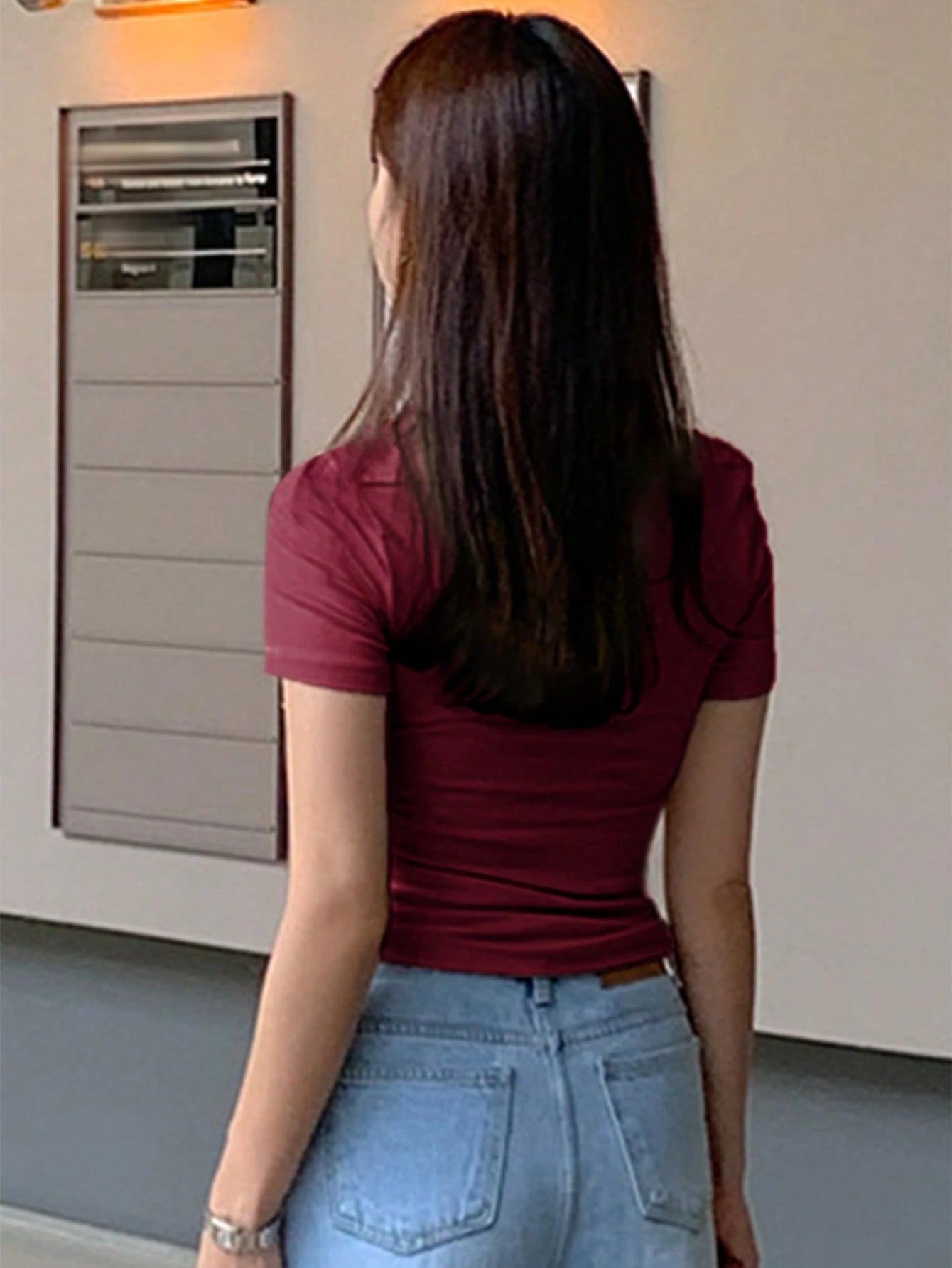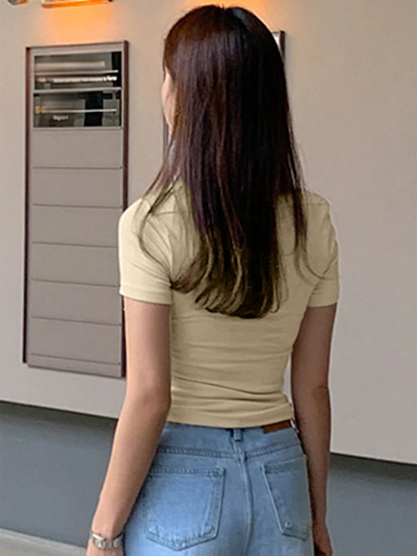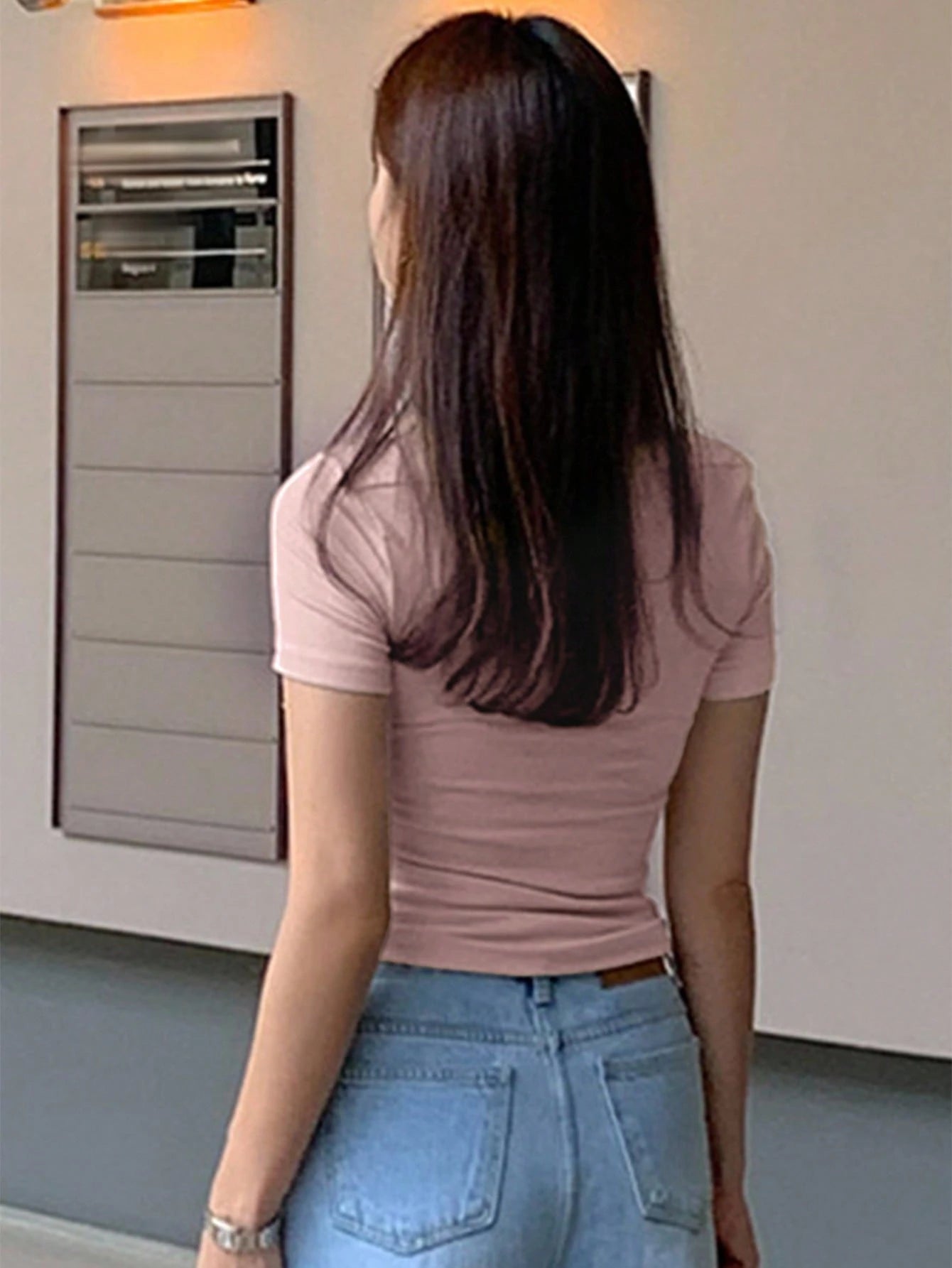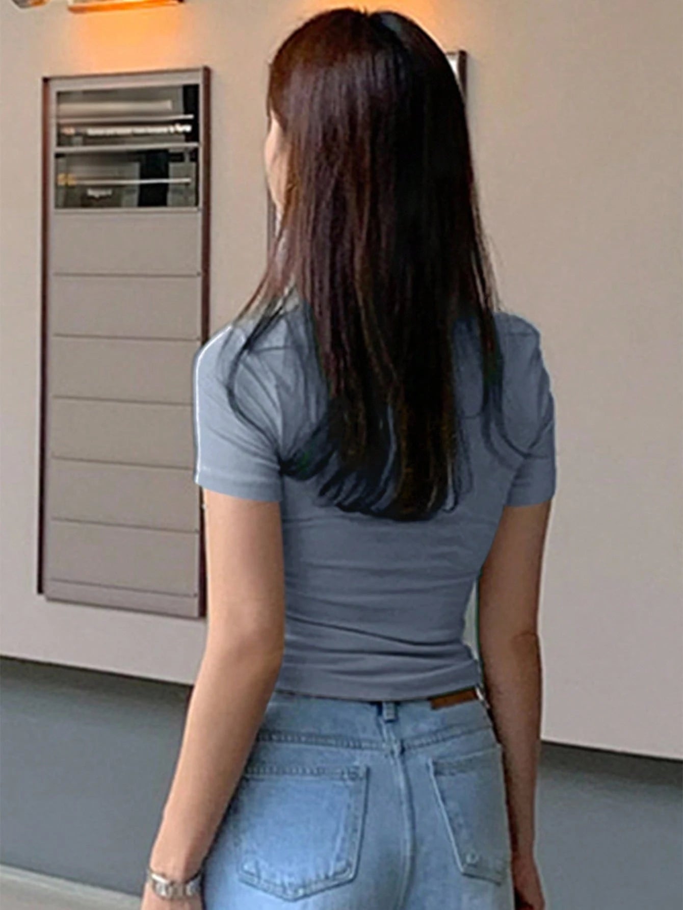 DAZY Women's Solid Color Mesh Patchwork Slim Fit Short Sleeve T-Shirt